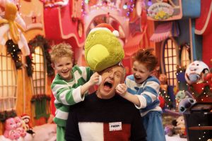 ***Images, quotes and information STRICTLY EMBARGOED until 6am Friday, 5 December Repro Free: 04/12/2025 RTÉ has revealed the theme of this year’s Late Late Toy Show will be none other than the beloved Christmas favourite, The Grinch. Host Patrick Kielty reveals the set at a photocall with cast members from the Spotlight Stage School, Paddy Geraghty BROTHER BUSTER (9) from Navan, and Louis Hanna BROTHER GREEN BEAN (7) from Dublin. Picture Andres Poveda