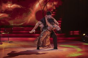 Singer-songwriter Tolü Makay performed the first Rumba of the season with partner Maciej Zięba, dancing to Faith Hill’s power ballad There You’ll Be.