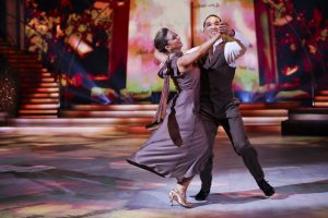 Stephanie floated across the floor in an elegant Viennese Waltz with Ervinas, set to Boyz II Men’s classic End of the Road.