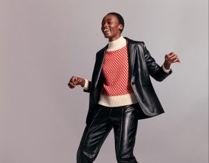 M&S Faux Leather Blazer €82 Faux Leather Straight Leg Trousers €55