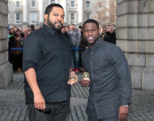 Americas hottest comedian and actor Kevin Hart and legendary hip hop artist and actor Ice Cube rode into Dublin today to collect the prestigious Gold Medal of Honorary Patronage for Outstanding Contribution to Acting and Entertainment from the Philosophical Society at Trinity College Dublin. The medals were presented by LudivineRebet, President of The Trinity Philosophical Society. Both appear in Ride Along 2, the much anticipated sequel to the blockbuster action-comedy that gave us the years most popular comedy duo which hits cinemas today.