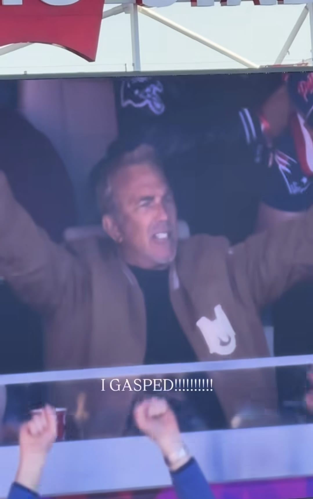 However, it wasn’t the game that had Maura Higgins feeling starstruck. She shared a video of Kevin Costner on the big screen with the caption, “I GASPED!!!!!!!!!!!”