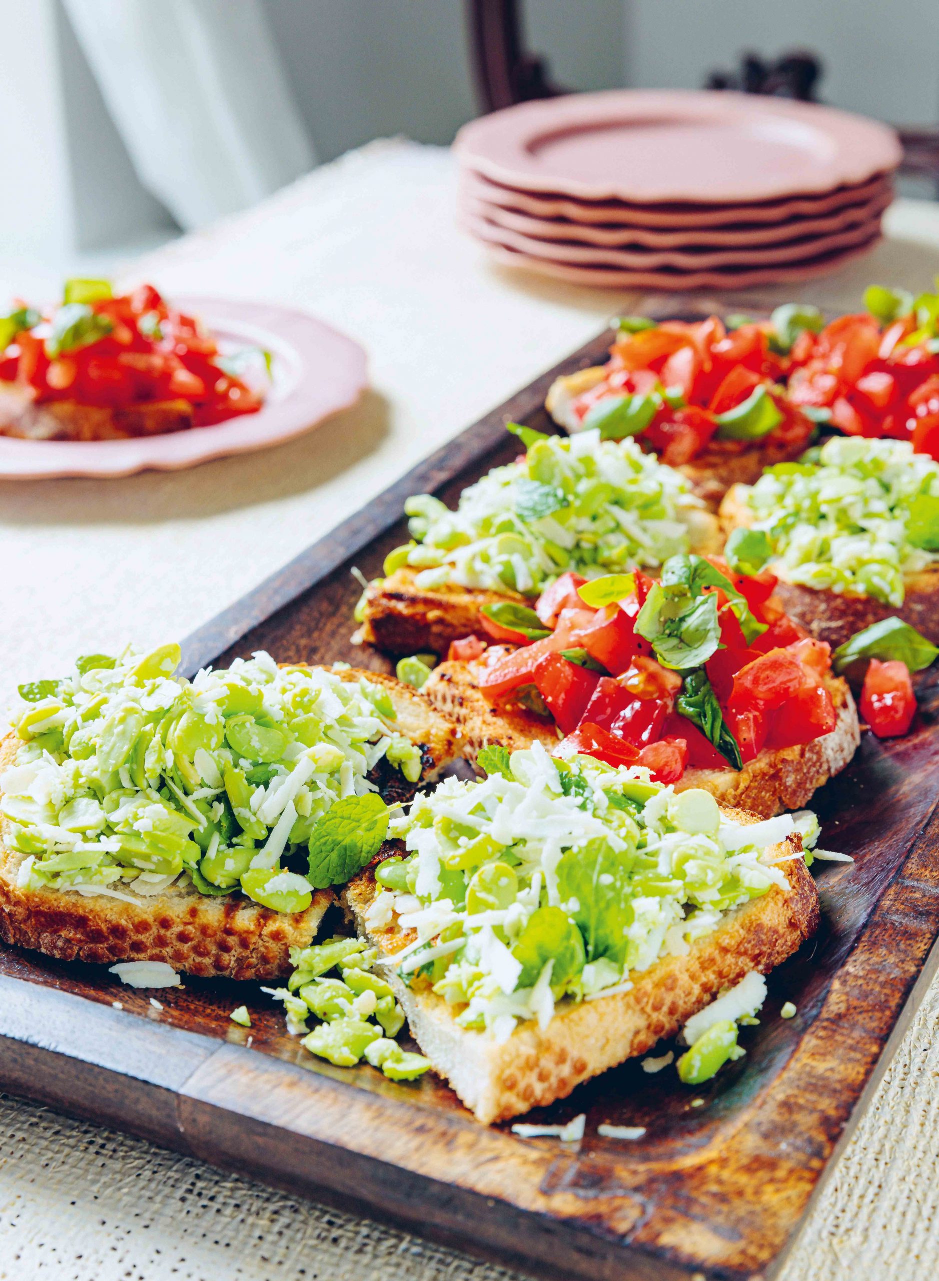 Bruschetta Two Ways: Tomato & Basil, Broad Bean