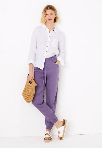 purple trousers