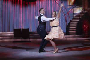 Fair City Actress Stephanie Kelly with Pro Dancer Ervin’s Merfeldas during the live show of RTE’s Dancing With The Stars.