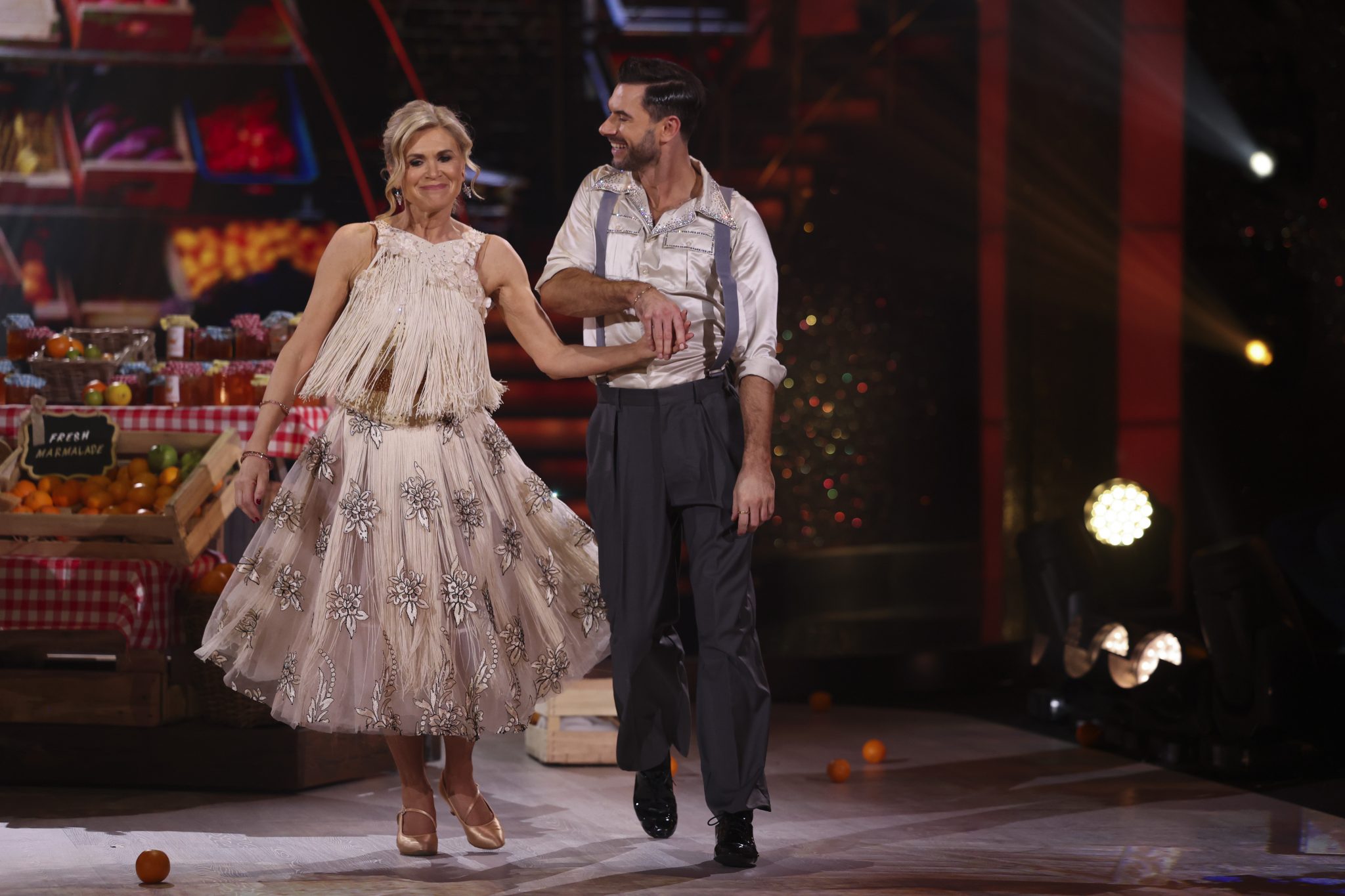 “I’m hoping that it won’t be two left feet all the time and that I’ll be able to get it together…but from watching it on television it sounds so exciting and it’s great to be part of such a great production so I look forward to the weeks ahead”.
