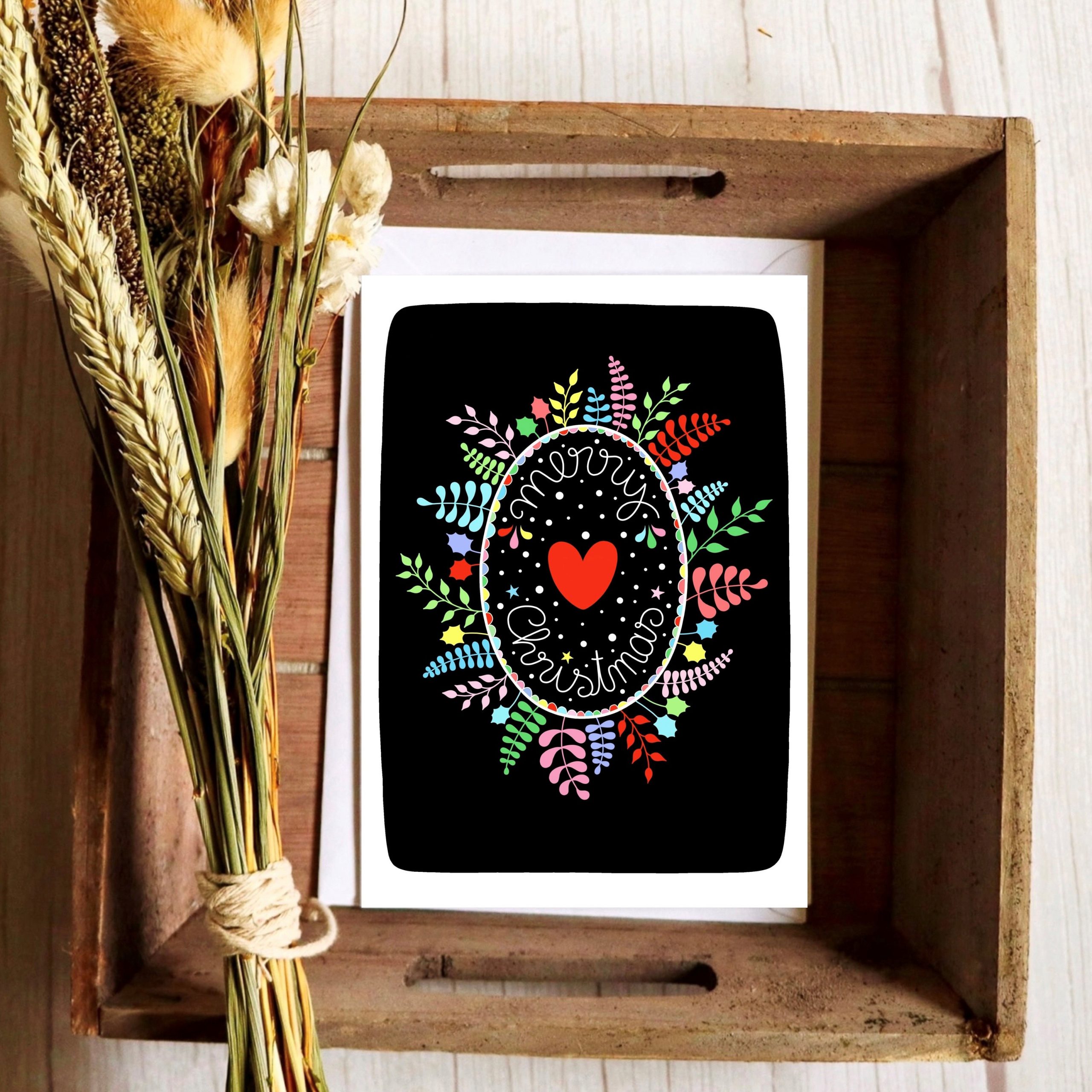 Merry Christmas Rainbow Wreath Christmas cards (€4) by Nadine Loves Paper will feature at Gifted