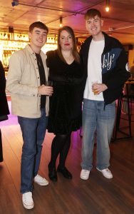 11/11/2025 NO REPRO FEE Cian Mooney,Caz Mooney and Brendan Caulfield pictured at Green Isle’s Festive Feast event in Medley. The event was hosted by Green Isle Ambassador Derval O’Rourke and guests were treated to a 3-course Christmas dinner where chef Andrew Rudd gave them all of the tips and tricks on how to save time by using Green Isle products this Christmas.Photo Leon Farrell/Photocall Ireland
